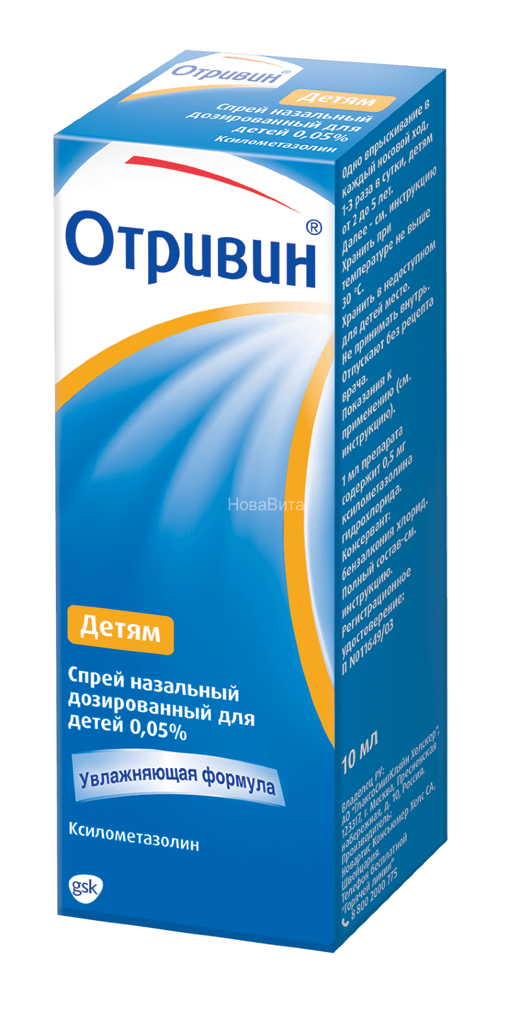 Спрей назальный дозированный 0.05%, в 1 мл содержит ксилометазолина гидрохлорида 0,5 мг,