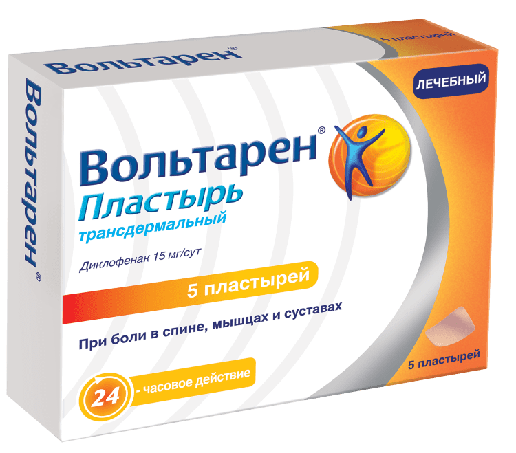 Вольтарен в виде пластыря трансдермального представляет собой основу с нанесенным адгезивным слоем, содержащим диклофенак, который обладает выраженными анальгетическим и противовоспалительным свойствами. Пластырь Вольтарен обеспечивает противовоспалительное и анальгетическое действие в месте аппликации, устраняя болевой синдром и уменьшая отечность, связанную с воспалительным процессом.