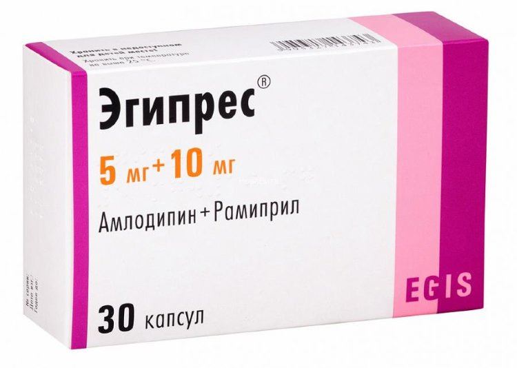 При терапевтической необходимости доза препарата Эгипрес® может быть изменена на основании индивидуального титрования доз отдельных компонентов: 5 мг амлодипина + 5 мг рамиприла или 5 мг амлодипина + 10 мг рамиприла или 10 мг амлодипина + 5 мг рамиприла или 10 мг амлодипина + 10 мг рамиприла.